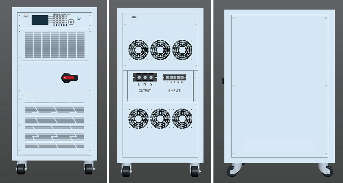 ? A7030 為 可 回 饋 交流電源 , 其輸入為 三 相 交 流380V,50Hz 電源,輸出為電壓 L1-N-L2:0-300V、頻率47-63Hz 可調,具電壓穩定度高、負載能力強、效率高、體積小的特點。